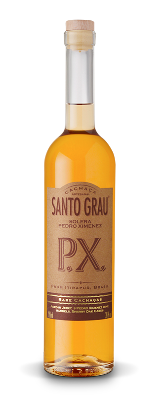 Santo Grau’s line of special cachaça aged by the traditional system of Solera in barrels (Sherry Oak Casks) that aged wines from Jerez, Spain. Our cachaças always have a story to tell in their recipes. Produced in centenary mills and always crafted with respect to the origins and thirst for innovation, our labels stand out for their care in the production process. From the Cachaças Raras de Engenho line, the Santo Grau Solera Pedro Ximenes (PX) and the Santo Grau Solera Cinco Botas are produced at the Itirapuã mill, in São Paulo. The two cachaças are produced through a dynamic ageing process unique to the region of Jerez, called Solera. With barrels stacked in a line, old and new liquids blend together to always ensure the same quality. And all this happens under the diligent care of the Figueiredo Cristófani family, who have five generations taking care of mills with the same dedication to the art of crafting striking and tasty cachaça. Santo Grau Solera Pedro Ximenes is aged in the same barrels used in the production of Jerez’s oldest wine, Pedro Ximenes. It is a soft drink, naturally sweetened with the essence of wine and grape characteristics.